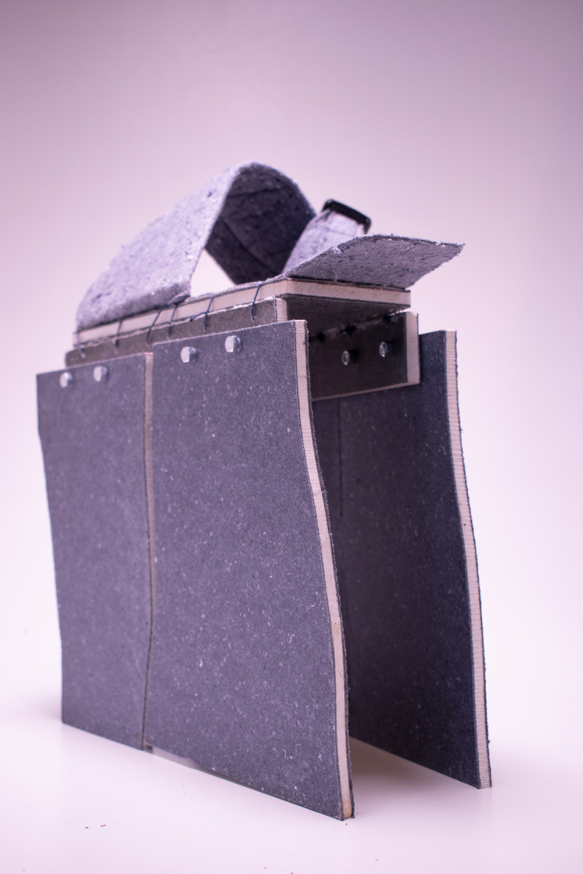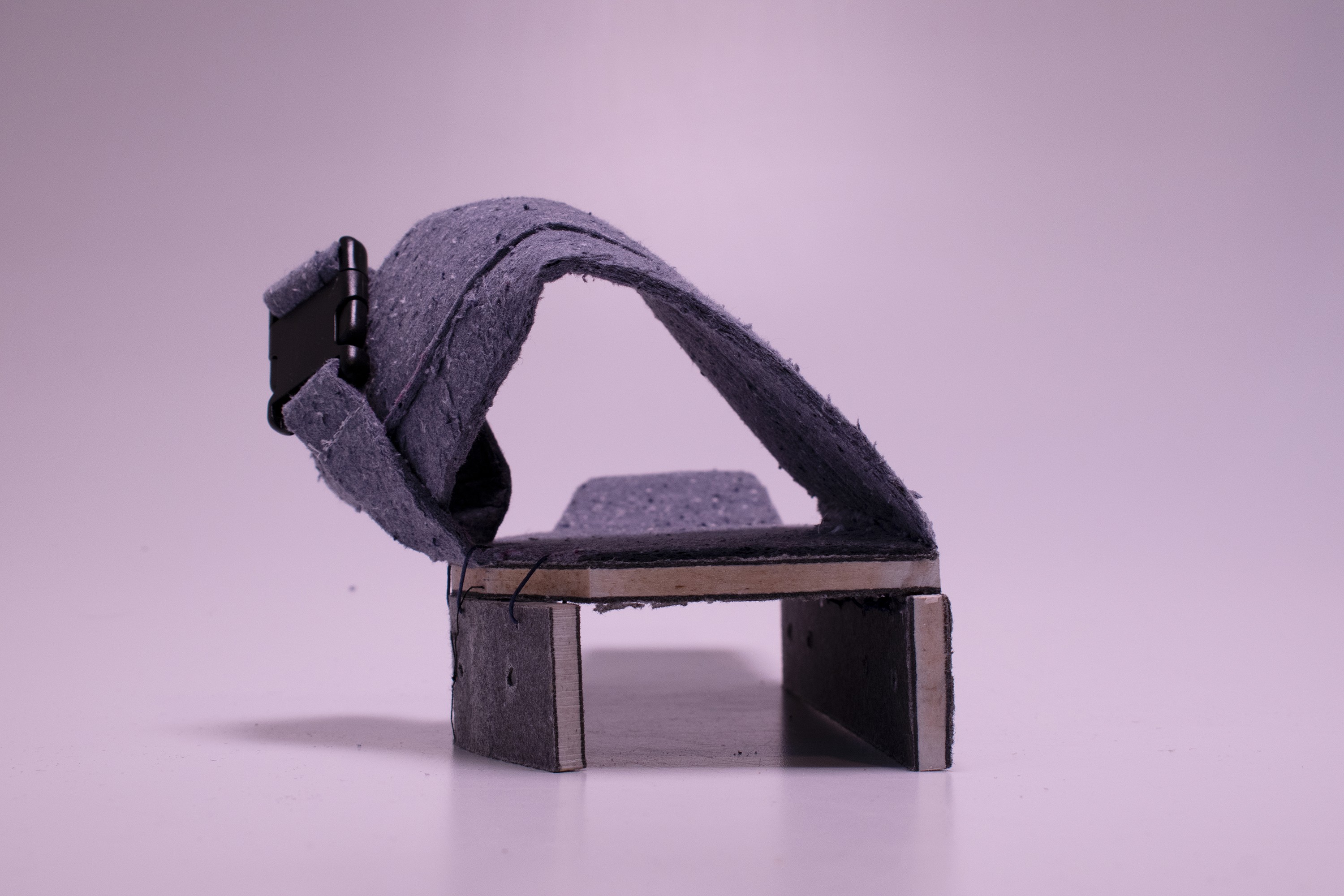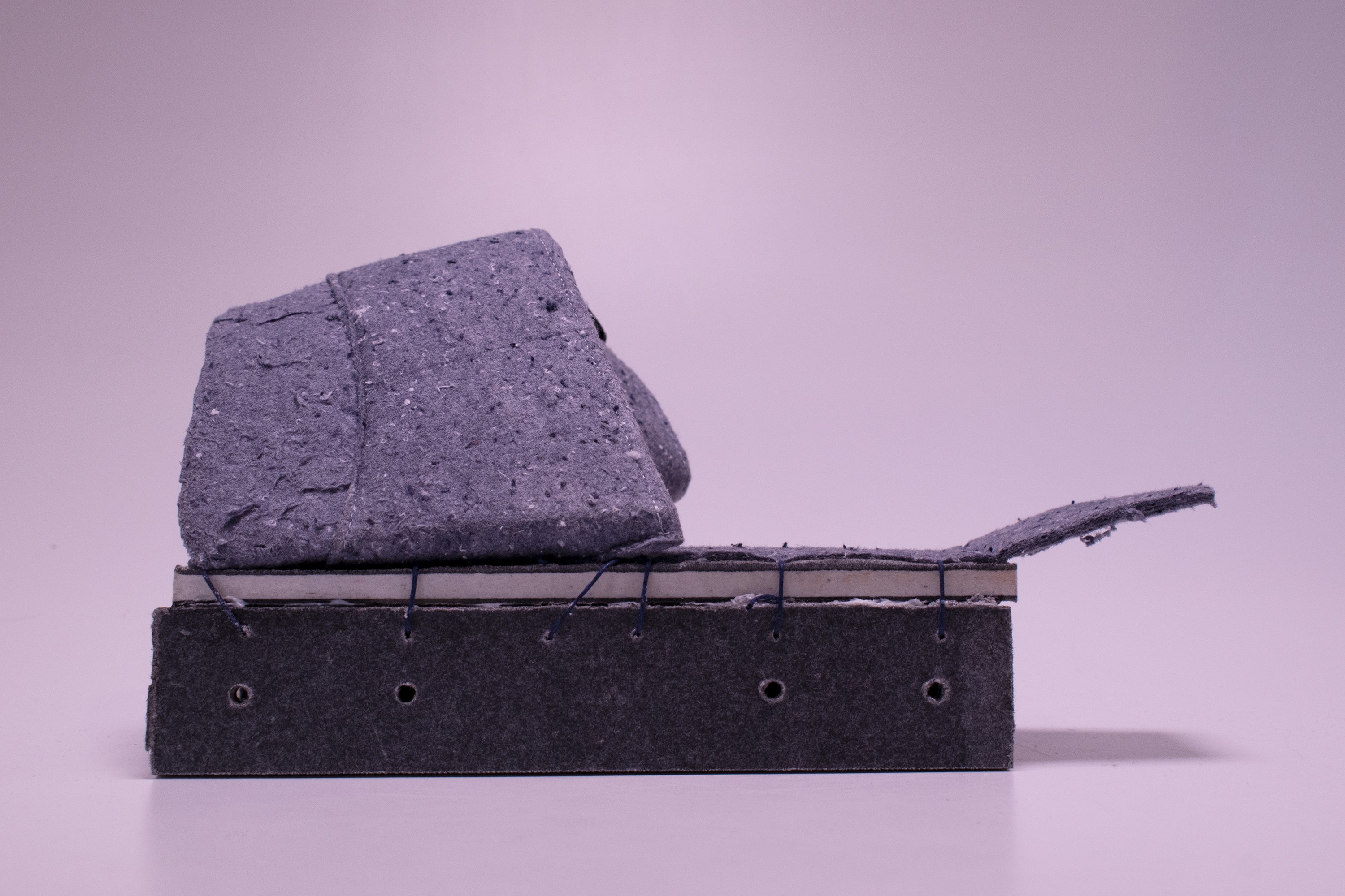 We were provided and worked with Kvadrat Really by Kvadrat to test out the possibilities with this new material. It is a material made out of excess fabrics that are left behind during production of their upholsters. It consists of 2 different variations, the hard wood-like material, and the soft felt material.