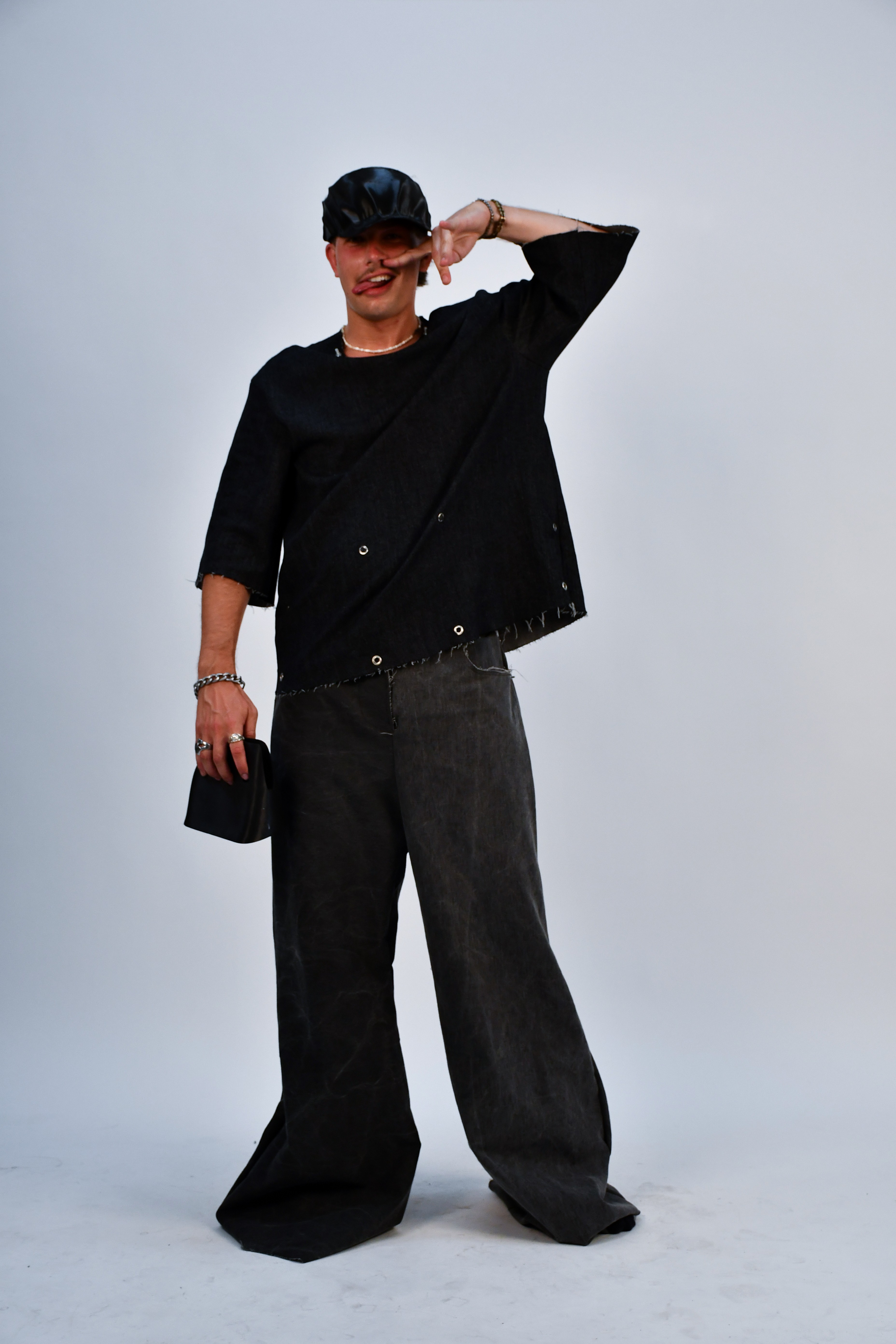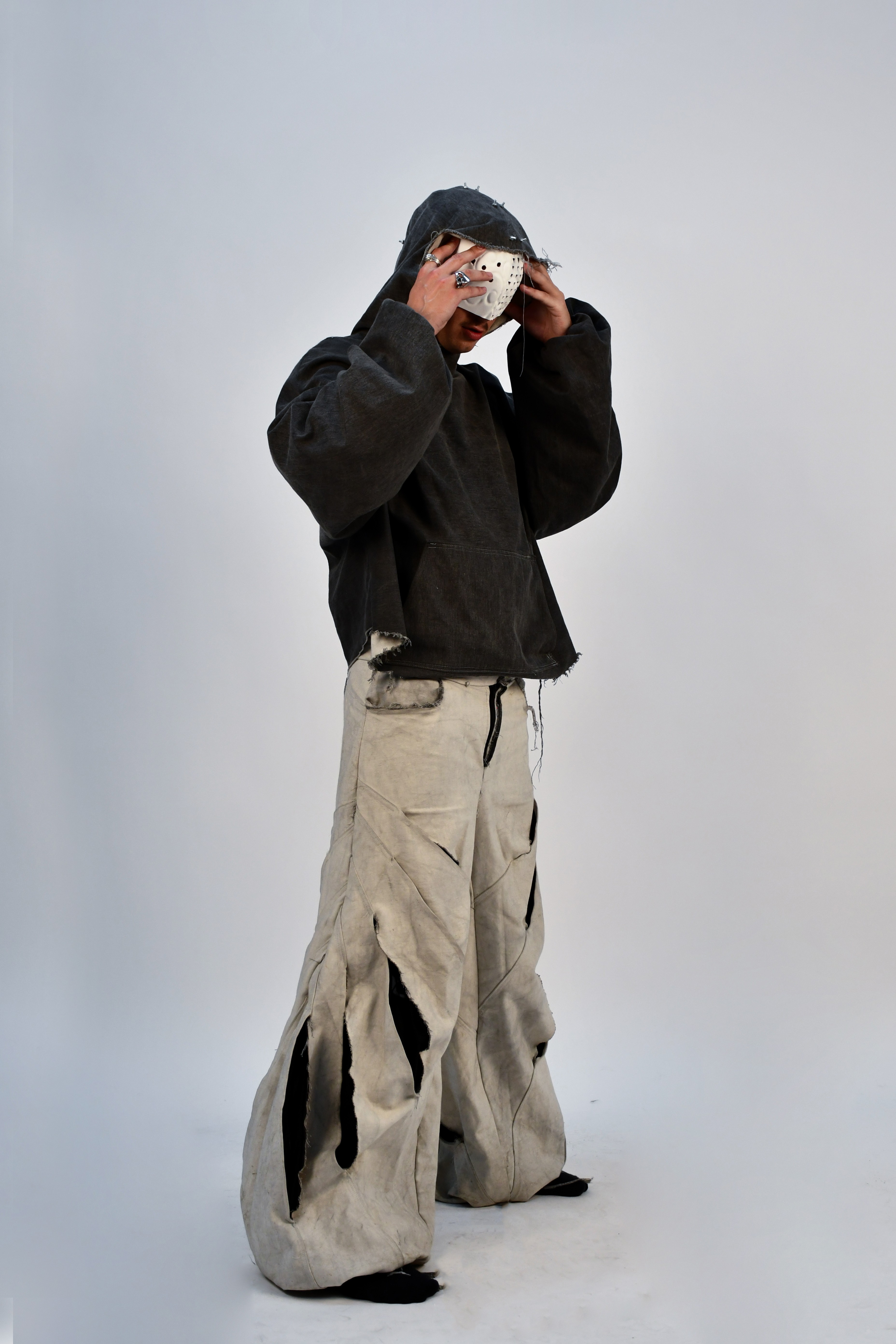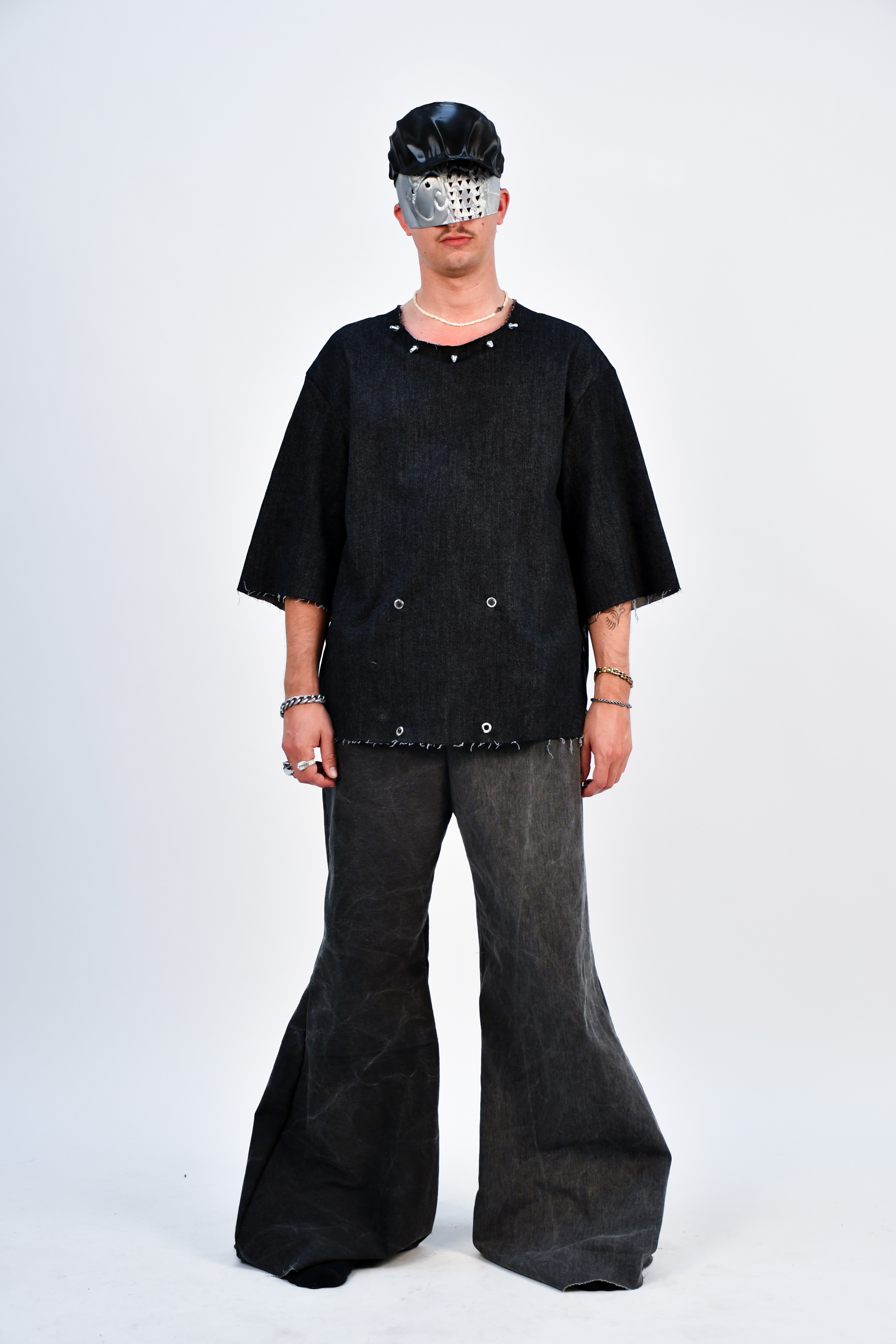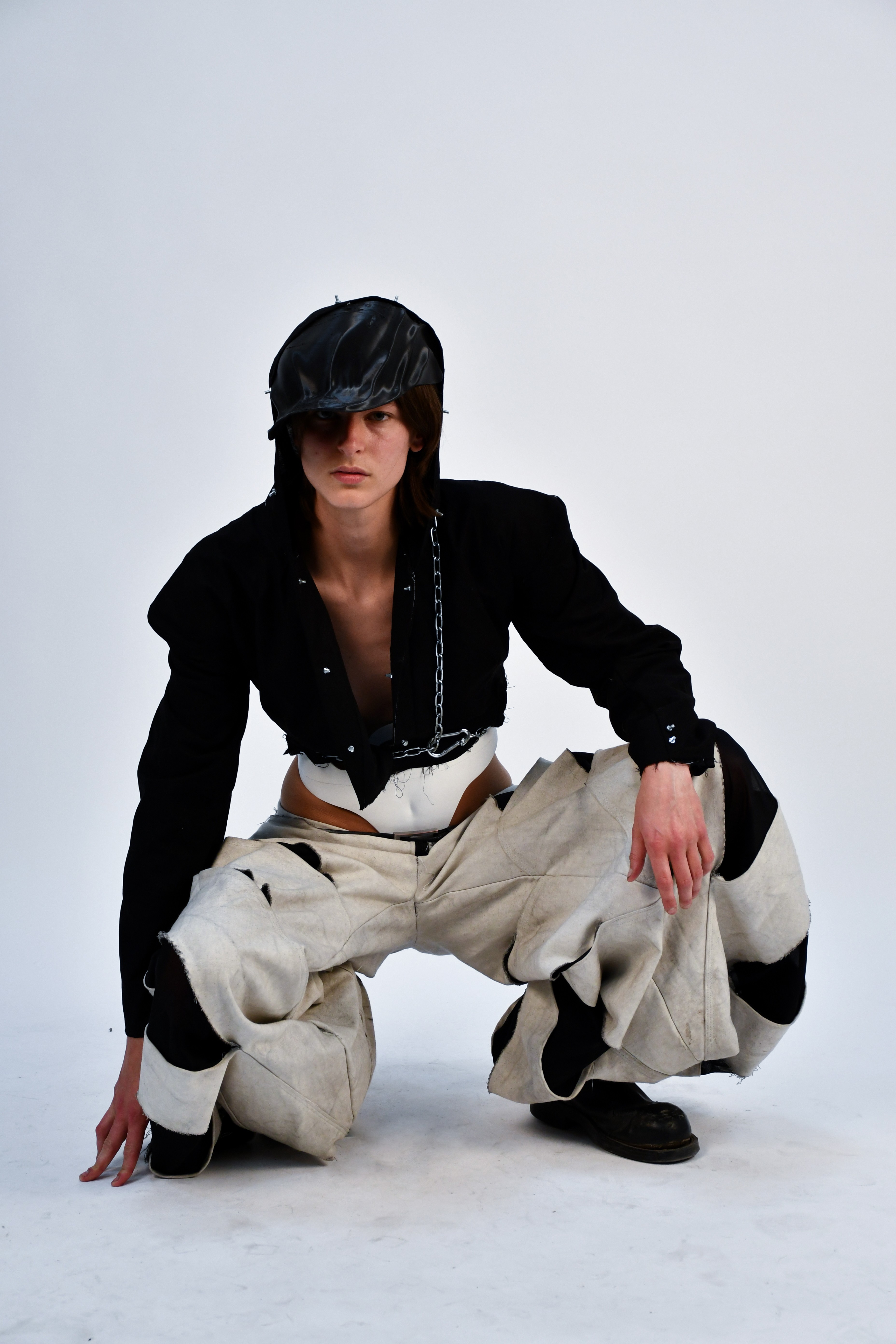 In a dystopian world where industrial laborers rise against systemic oppression, Factory Reclaimed reimagines clothing as a form of rebellion and self-expression. Drawing inspiration from factory floors, mechanical workshops, and the raw aesthetics of utility, this collection fuses fashion with hardware—incorporating nuts, bolts, carabiners, and industrial fasteners as integral design elements.