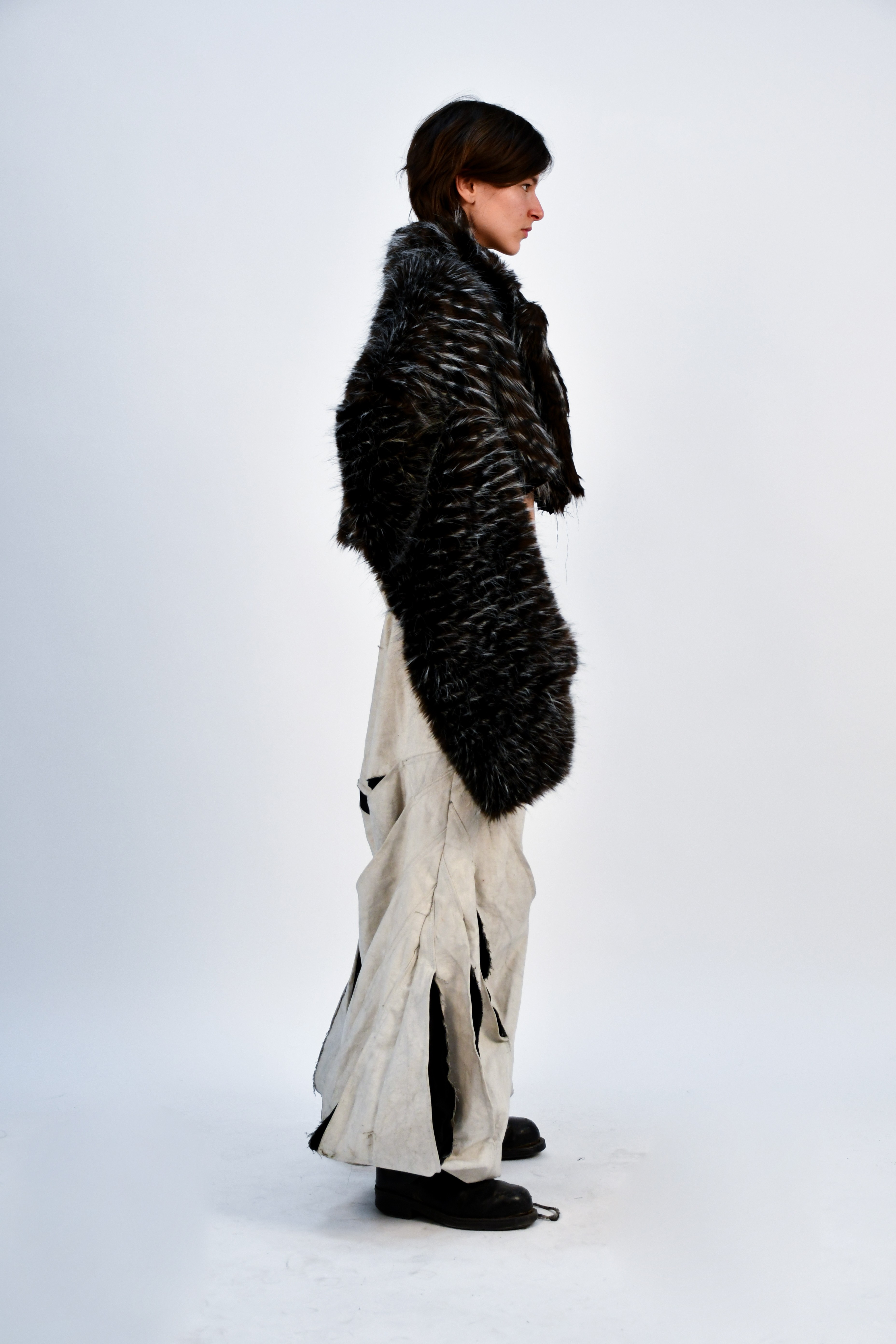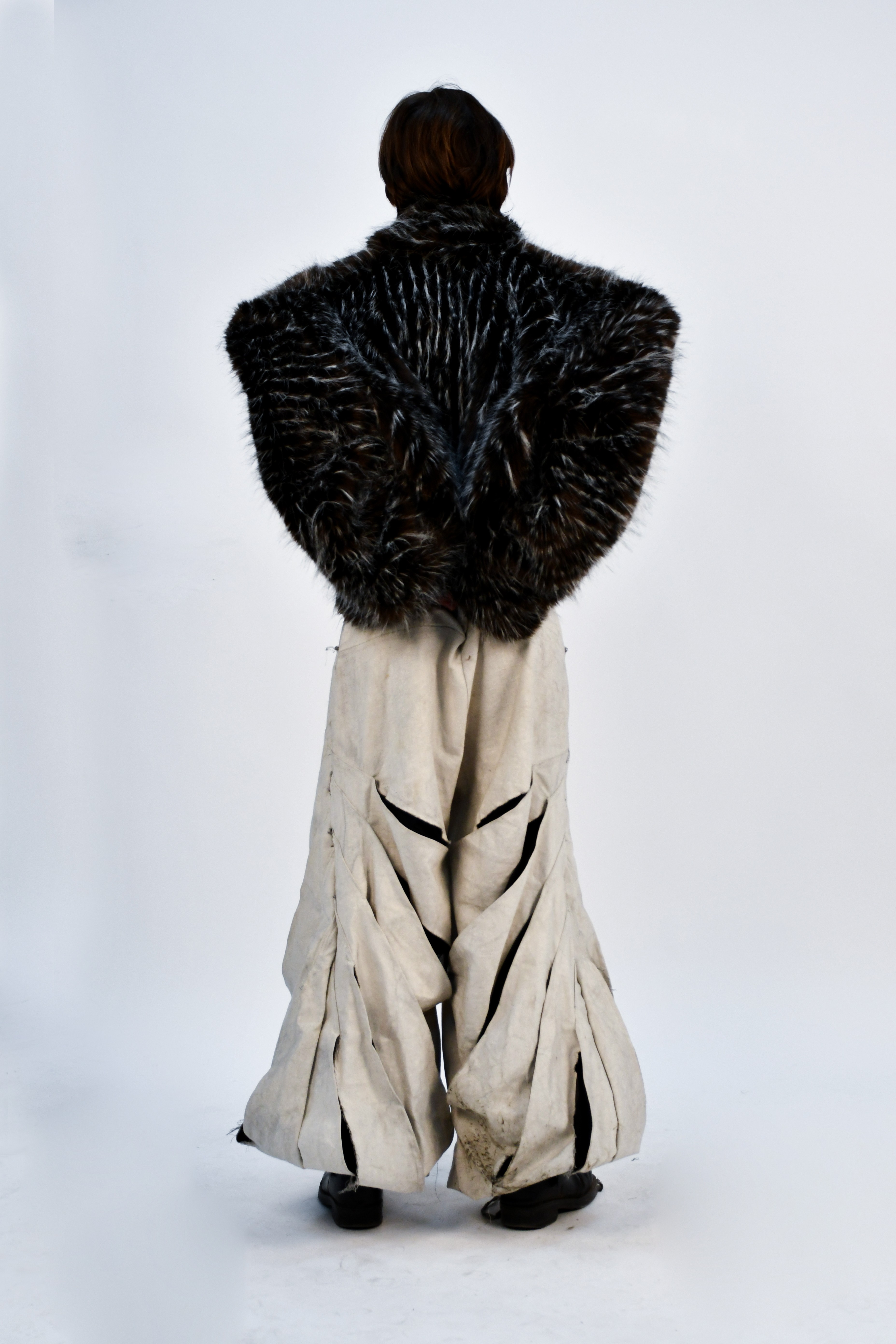Each garment tells the story of workers reclaiming both their tools and their agency. Materials once used to build machines are repurposed into statement details, challenging traditional ideas of beauty and luxury. The silhouettes are utilitarian yet defiant—worn as armor, protest, and declaration.