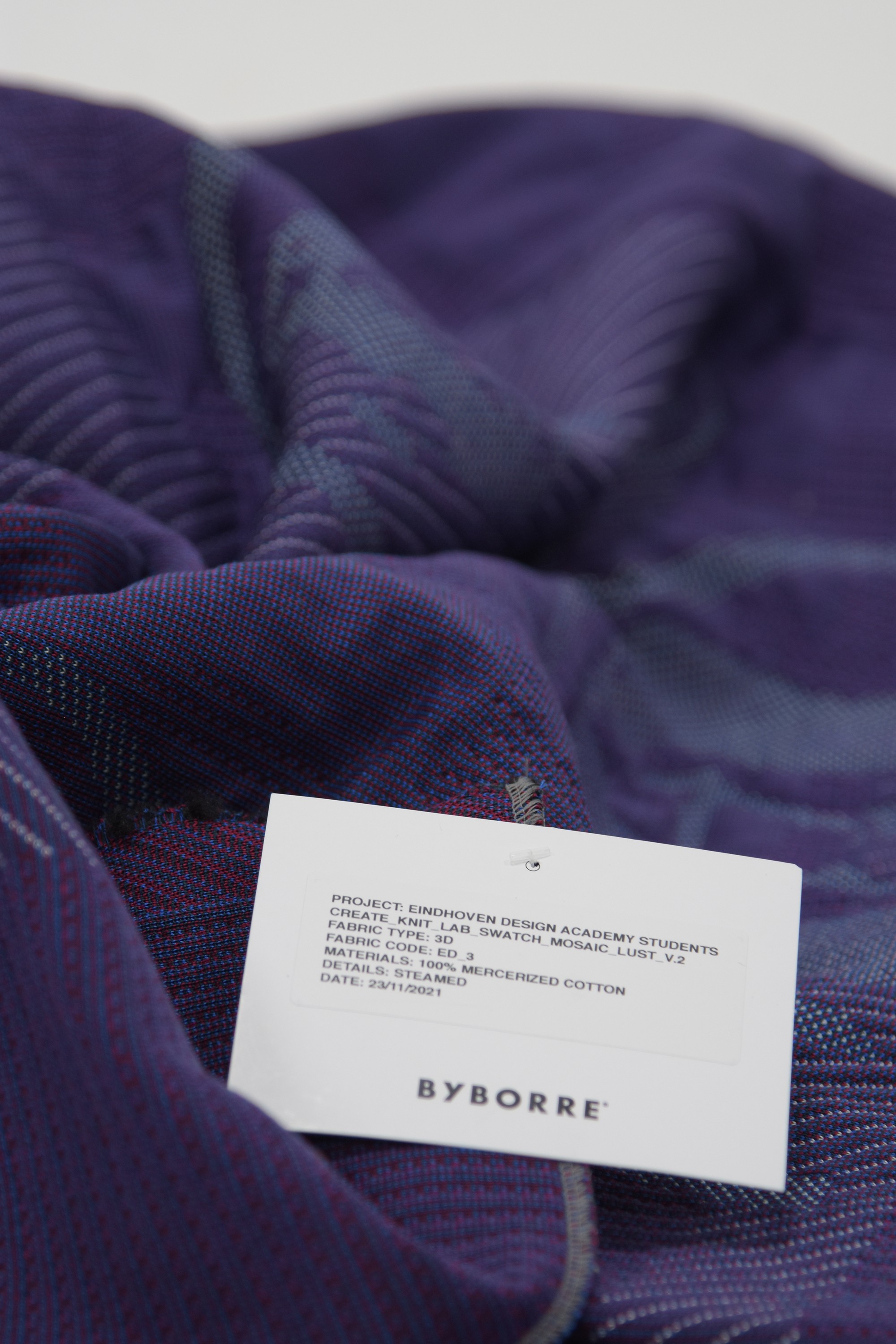 We had the opportunity to have a workshop with byBORRE. The purpose was to make a textile through their, at the time, new system/platform called “Create”. We were assigned to different groups and in this case I worked with Isa de Meijer, Olfa Rachdi and Eva Kirichenko. The idea behind this piece was to make a graphic textile in order to veer away from the company’s usual aesthetic to try something different with the platform that we were allowed to use. All of us had patterns we were working with at the time, therefore, we decided to find a common theme between all of them, an essance. This theme we all had in common was the topic of Lust. It was a fascinating topic that concerned both the positive aspects and the negatives. Taking both ends of the spectrum in mind, we created a “church window-like” textile that had two different faces to it. Dark purple representing the negative, and light pink the positive.