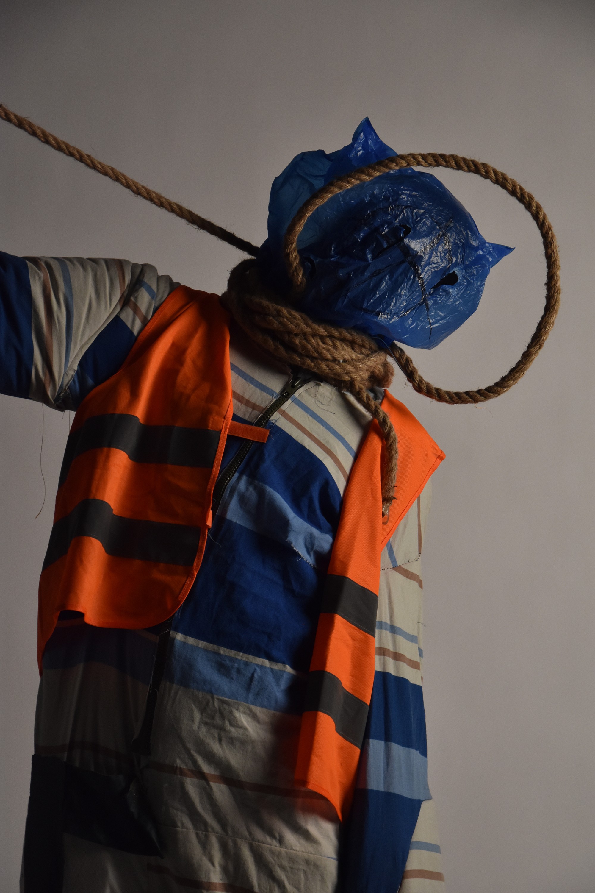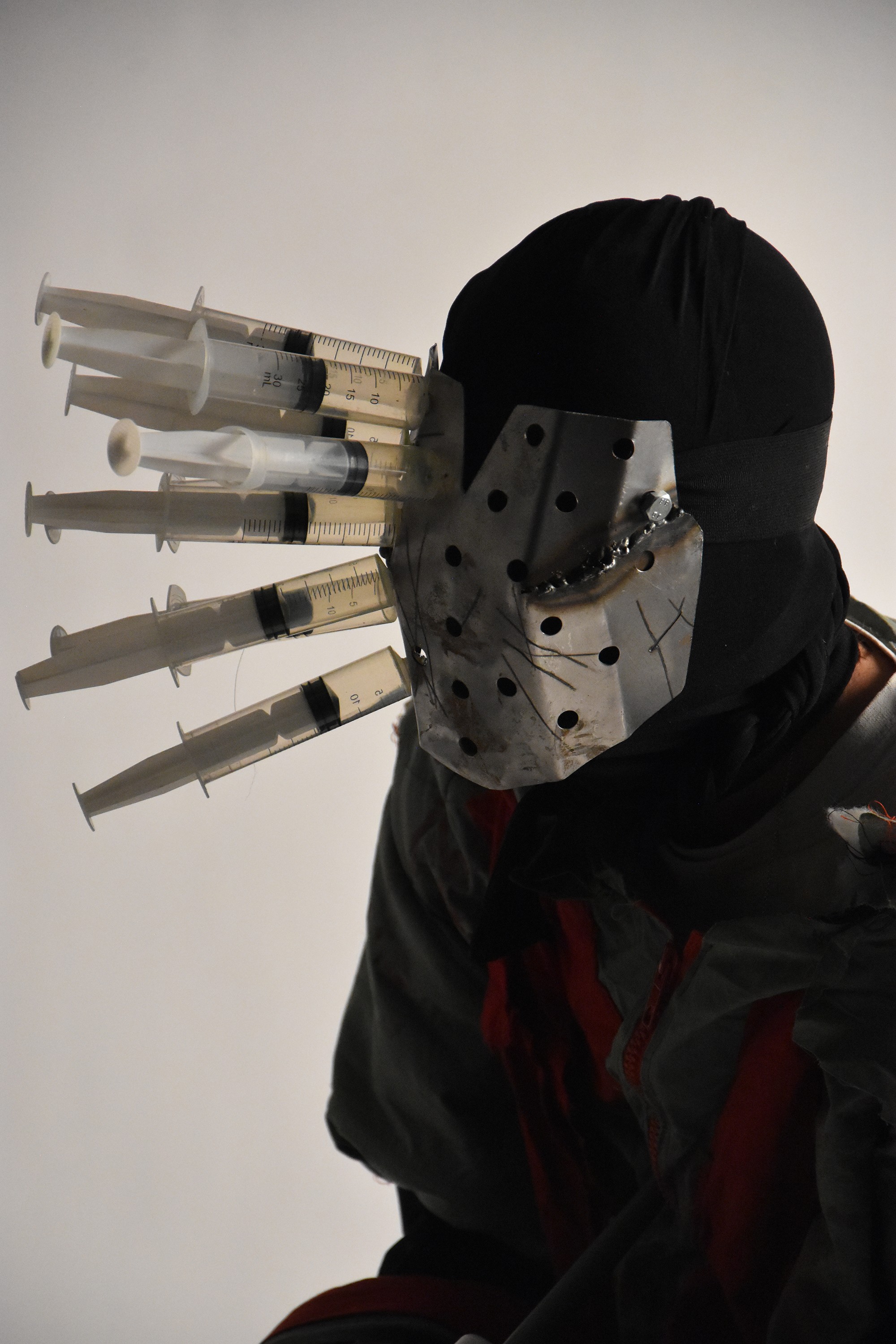 By sticking to the DIY techniques used by inmates of high-security prisons and materials that can be only accessible to a prisoner (bed sheets, foam, steel, etc.), it creates a gritty reality and a grim future where each look tries to blind themselves from what is about to come to them by wearing their personified masks.
